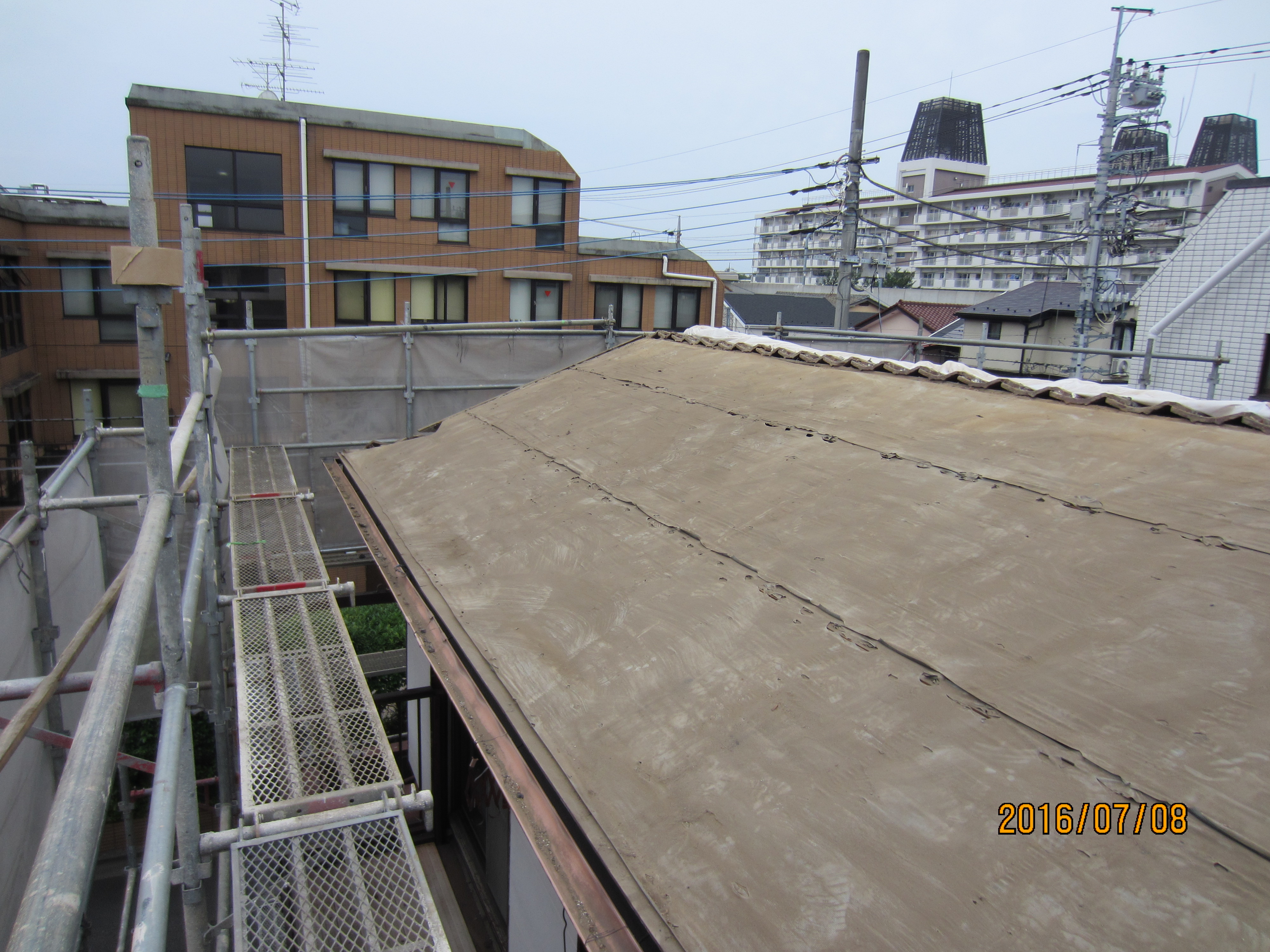 中古住宅を購入に伴い耐震改修工事をご注文頂きました。S56年以前建築の耐震性確保への国立市の助成制度を利用することを念頭に検討を進め、効果の高い重い瓦屋根の葺き替えと1F和室の改修を行いました。