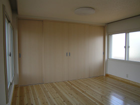 家具を置かなくてもいいように、大容量の収納を作りました。