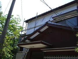 サイディングを貼る前に防水紙を貼ります。