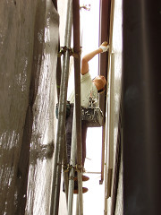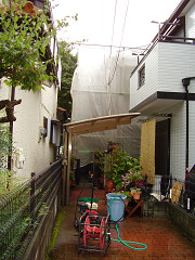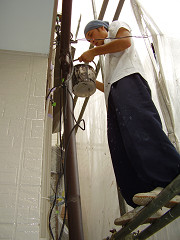 塗装完了後散飛シートを剥し塗料の飛跳ねや駄目周りの確認をします。