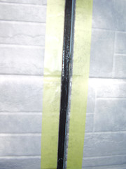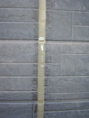 高耐久シーリング材を打ち均し養生テープを剥します、判り易い様ベージュ色にしました